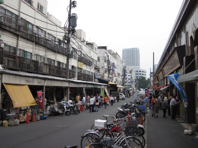 残念ながら築地へは昼間に行ってしまったので、場内の盛んなマグロのセリを見ることは出来なかったのですが、場外の雰囲気に圧倒されました。
