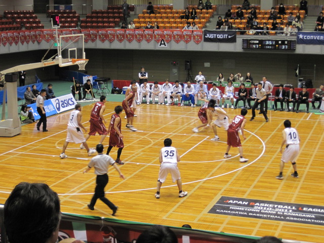 今日はToshiba Brave Thunders vs. Hitachi Sun Lockers のゲームを見に平塚総合体育館に集合。