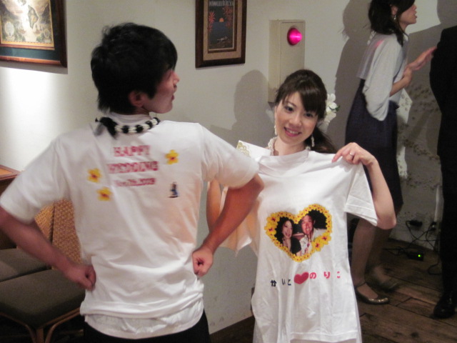 このペアルックT-シャツを着てWaikiki をLOVE LOVE ウォーキング してると思いますので、見かけたらおめでとうと声を掛けてあげて下さい。