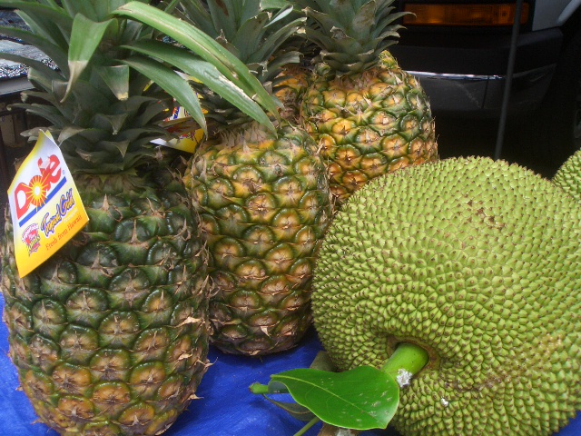 上の写真はパイナップルとドリアン?