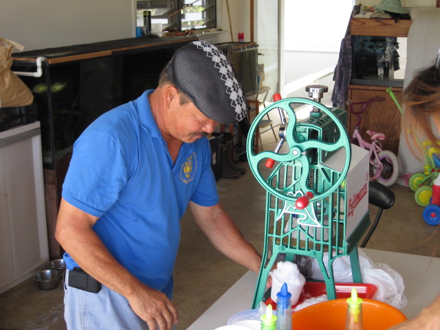 Tokoro じいちゃんが随分レトロな秘密兵器でカキ氷を作っているではないか(笑)